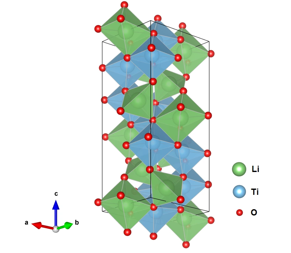 Figures 2b show the unit cells of Spinel lithium titanium oxide (Li4Ti5O12, LTO), which belong to the Fd-3m space group (No. 227).